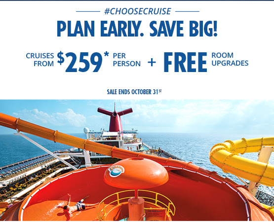 For a limited time only, $99 reduced deposits on Carnival Vista , Carnival Horizon & Carnival Panorama. Hurry! Sale ends October 31, 2018.