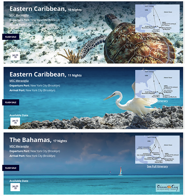 From the picture-perfect beaches of Bermuda and Caribbean, to the turquoise waters of The Bahamas and Florida (with late-night stays in Miami and Port Canaveral), exciting itineraries aboard MSC Meraviglia are now ready to book.