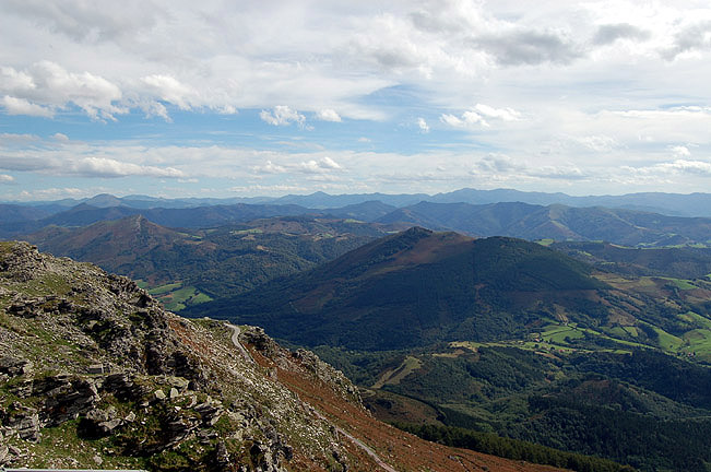 Пиренеи. Страна Басков. А потом мы оказались на границе с Испанией, в загадочной Стране Басков… Баски – удивительный народ. Их происхождение до сих пор никому не известно. Язык басков (эускара) не относится ни к одной языковой группе, хотя алфавит, на мой взгляд, немного напоминает греческий. Говорят, что корни баскского языка уходят во времена палеолита, но его ни в коем случае нельзя назвать примитивным, скорее наоборот, он чрезвычайно сложен. Архитектура басков тоже очень своеобразна и ни на что не похожа. Национальная одежда басков всегда отличалась большим разнообразием в зависимости от местности. Женский костюм - это короткая черная куртка на шнуровке с золотым и серебряным шитьем, голубая юбка, на которую надевается нарядный чехол, на голове – два шелковых банта, ленты в волосах и красная, обшитая бархатом мантилья, а также бусы и серебряные и золотые ожерелья. Мужской костюм - это черные облегающие штаны до колен, жилет, куртка с серебряными пуговицами, широкий пояс, белая шерстяная пелерина на плечах, а на ногах - черные короткие шерстяные чулки и кожаные башмаки с пряжками. На голове - баскский берет черного, синего, красного или белого цвета. Нужно ли говорить о том, что я всей этой красоты не увидела: баски в таком виде по улицам не гуляют, а на свои праздники они меня не приглашали. Но вот берет - обычно красный - сохранился в повседневном употреблении по сей день. С глубокой древности баски считались первоклассными мореходами. По некоторым данным, они побывали в Америке еще до Колумба. Во всяком случае, все капитаны каравелл его экспедиции были басками.