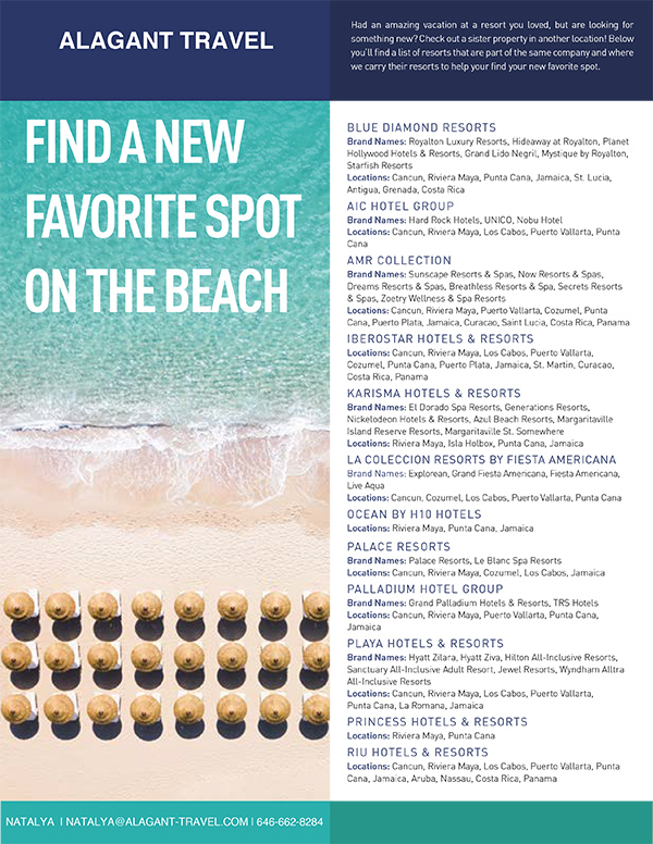 AMR COLLECTION, BLUE DIAMOND RESORTS, IBEROSTAR HOTELS & RESORTS, PALACE RESORTS, RIU HOTELS & RESORTS and much more.